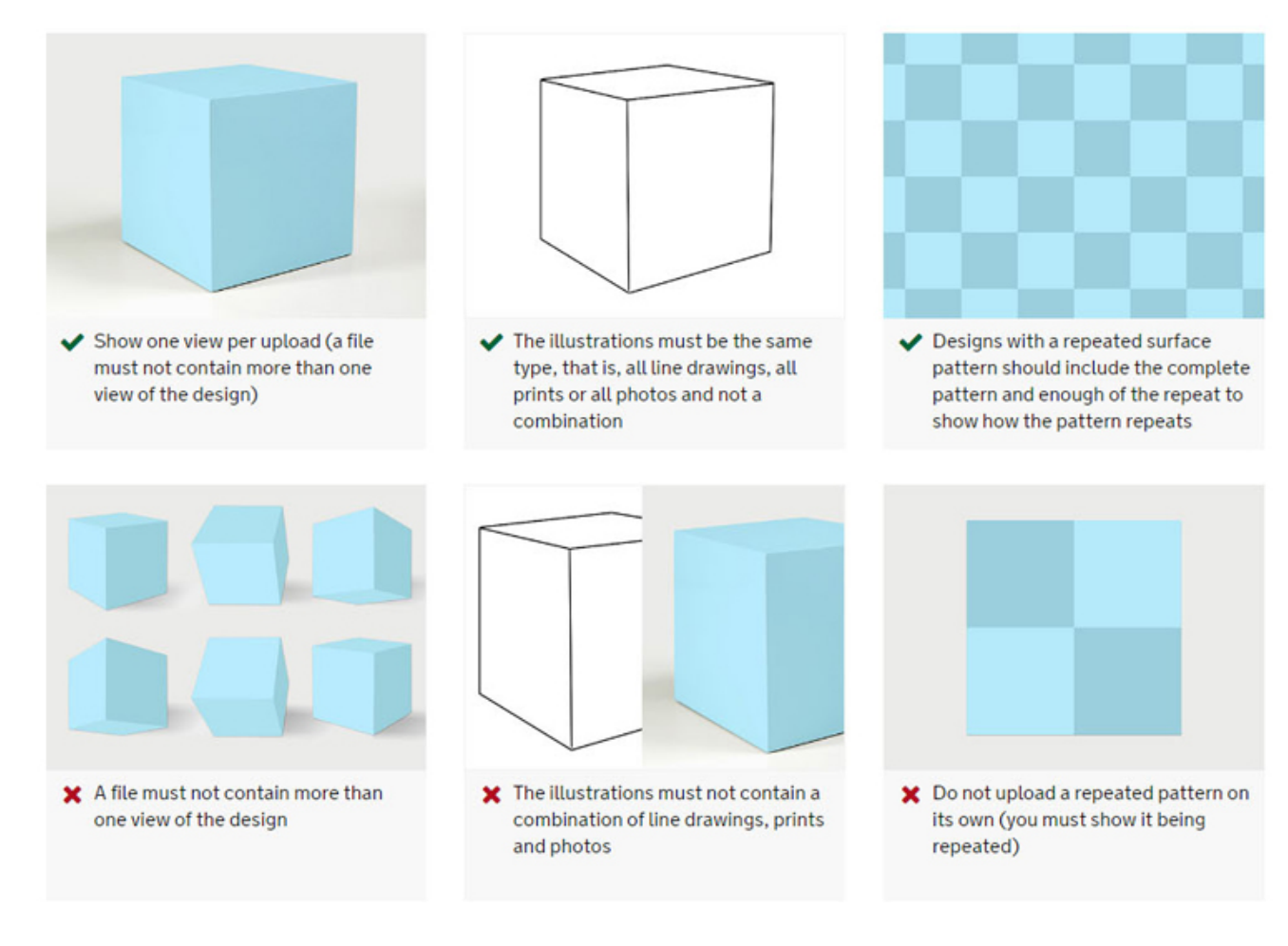 (7)如果要注冊(cè)表面圖案,應(yīng)包括完整的圖案并足以顯示圖案的重復(fù)方式。