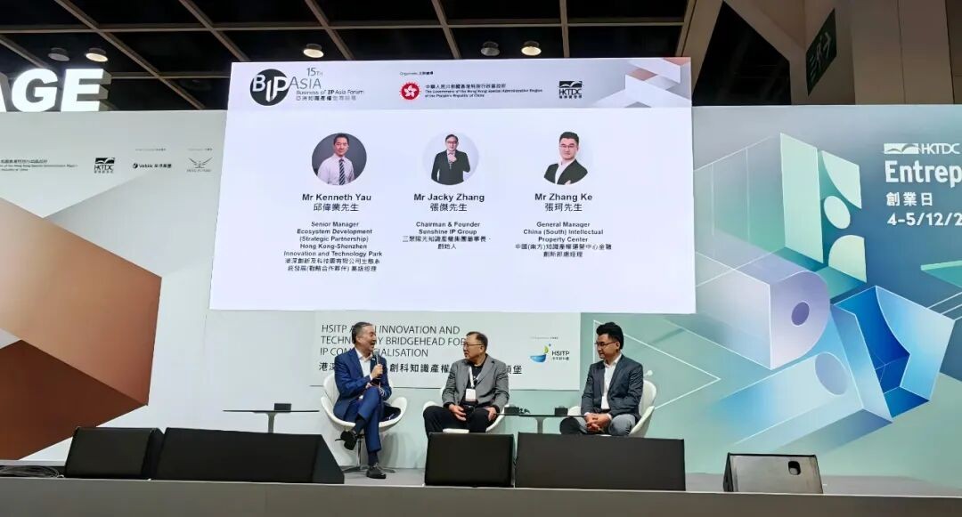 12月4日至5日,第十五屆亞洲知識(shí)產(chǎn)權(quán)營商論壇(BIP Asia)在香港會(huì)議展覽中心舉行。本屆論壇由香港特別行政區(qū)政府與香港貿(mào)易發(fā)展局主辦,聚焦“推動(dòng)引資 賦能增長”,圍繞知識(shí)產(chǎn)權(quán)如何支撐企業(yè)融資、估值與可持續(xù)增長展開交流,并繼續(xù)設(shè)置面向產(chǎn)業(yè)對接與展示的相關(guān)板塊。三聚陽光知識(shí)產(chǎn)權(quán)集團(tuán)受邀參會(huì)并設(shè)展,積極與政府機(jī)構(gòu)、產(chǎn)業(yè)組織及國際同業(yè)開展對話與合作。集團(tuán)董事長、香港公司董事張杰,香港公司總經(jīng)理張治華,集團(tuán)涉外部經(jīng)理程鋼,涉外市場部副經(jīng)理羅丹稱等參會(huì)。